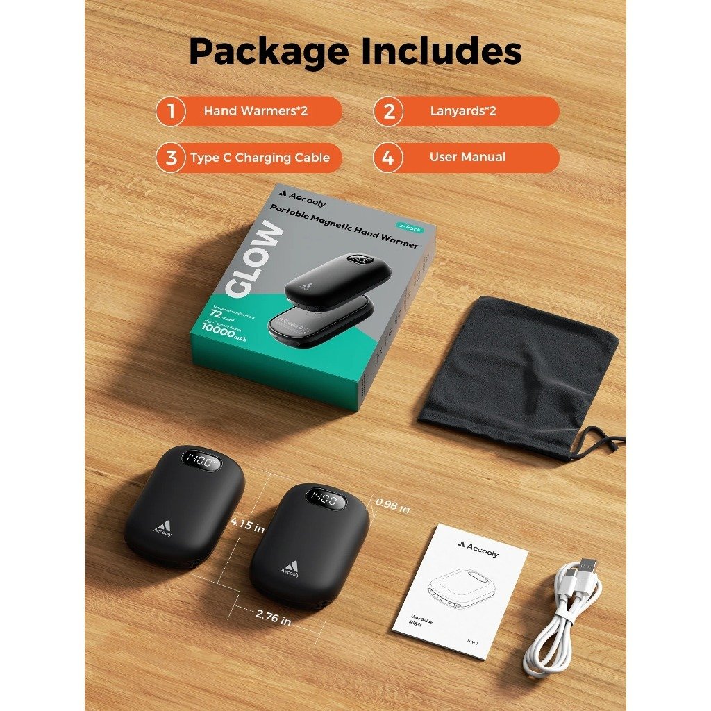 Giới thiệu Máy Sưởi Cầm Tay Từ Tính Mini AECOOLY Glow 01 (15W Max Heating Power, 140°F, Digital Display, Digital Display, ±0.5°C Adjustment, Flashlight, 20000mAh, Heating Area 13.5in², IP65)