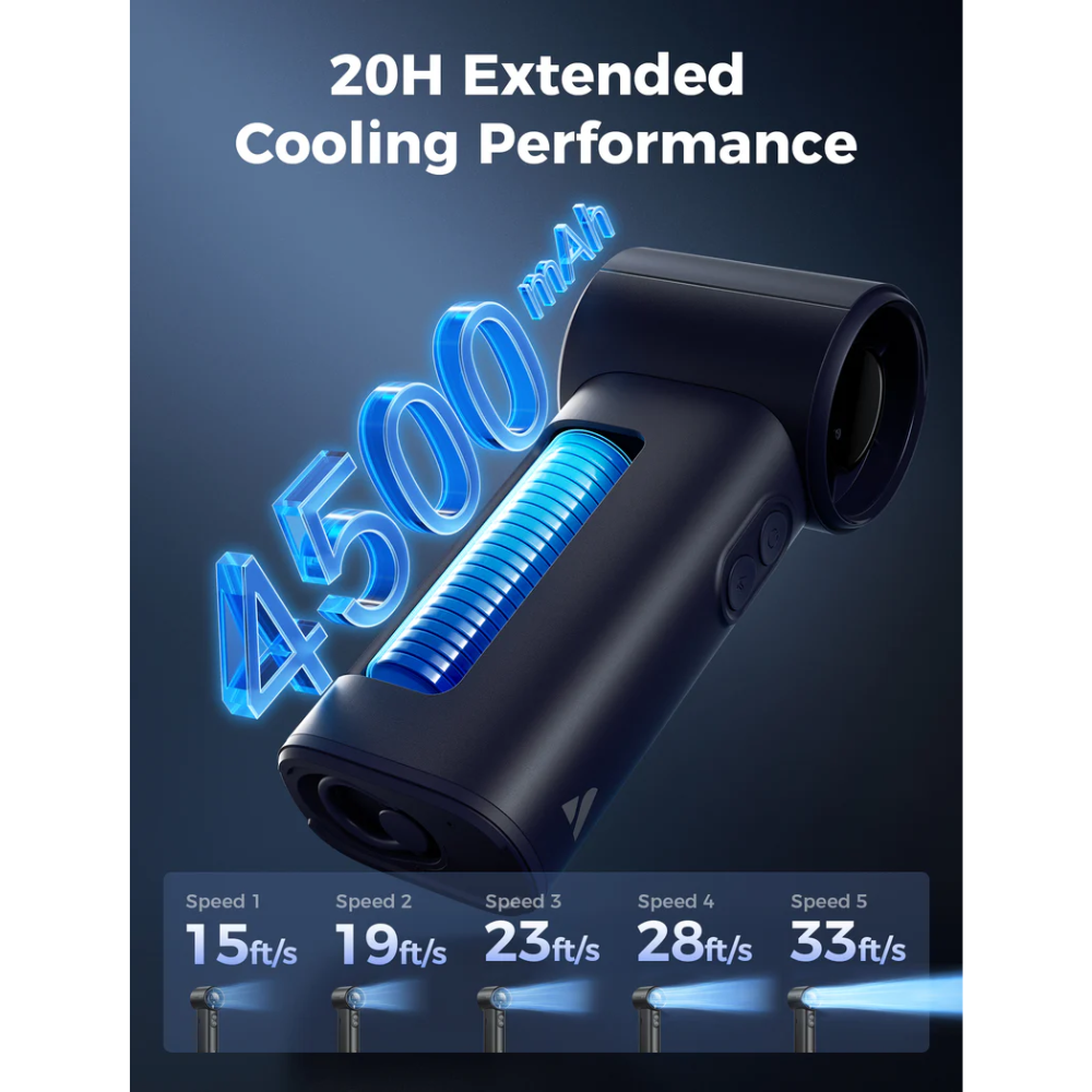 Tính năng Quạt Cầm Tay Phun Sương Tốc Độ Cao AECOOLY Cold Air Pro (12000RPM, 9.5m/s, 5-Speed Level Adjustment, ≤51db, Up to 25H, 4500mAh)