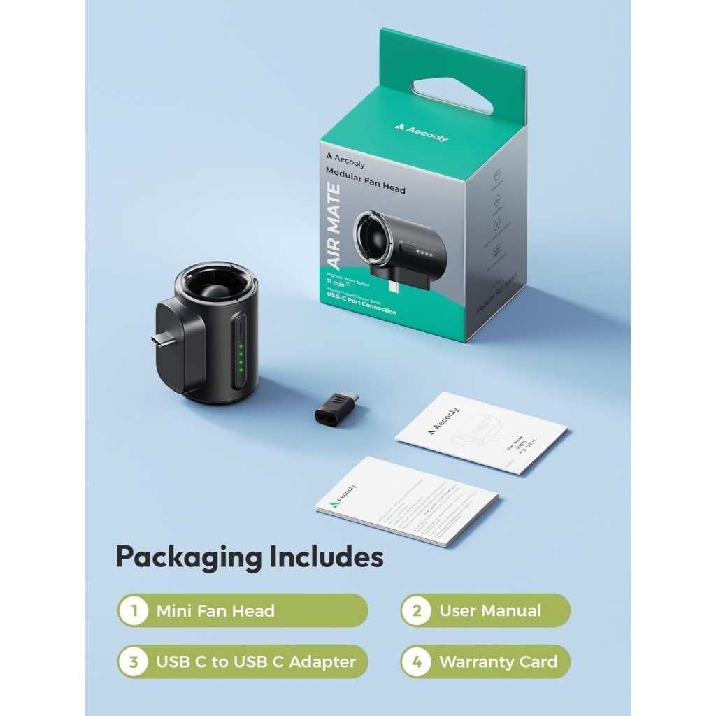 Giới thiệu Quạt Mini Cổng Type-C Tốc Độ Cao AECOOLY Air Mate (17000RPM, 4-Speed Level Adjustment)